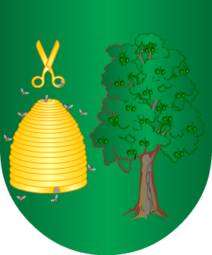 13.- Otros, según Cadenas: En sinople, y junto flanco siniestro un árbol y junto al flanco diestro, una colmena de oro con abejas del mismo metal, volando alrededor del árbol y una podadera, también de oro, puesta sobre la colmena.