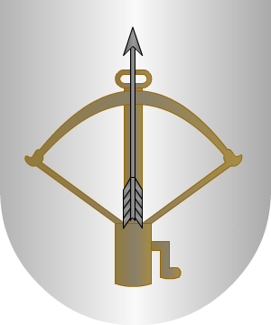En campo de oro, una banda de sable, cargada de un escudete de plata, cargado