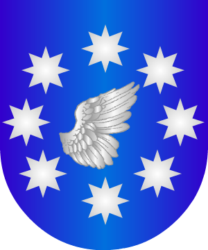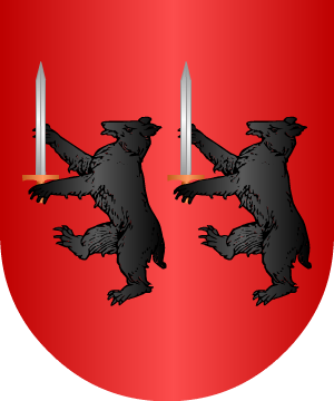sobre ondas de agua de azur y plata, y dos jabalíes de sable, afrontados
