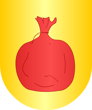 de oro, coronado del mismo metal y colocado bajo la puerta. Bordura de plata,