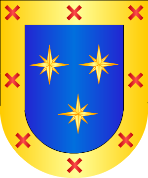 cortado de gules, con tres bandas de plata. 8.- La línea de la casa de los Duques de Ahumada, que emparentó con la de Holgado, trae: Escudo cuartelado: 1º y 4º, en campo de plata, una cruz del mismo metal, semejante a la de Calatrava, fileteada de sable, y 2º y 3º, en campo de oro, cinco estrellas de plata, puestas en sotur y fileteadas de sable. Complemento de información de estos linajes por cortesía de blasonari.net |