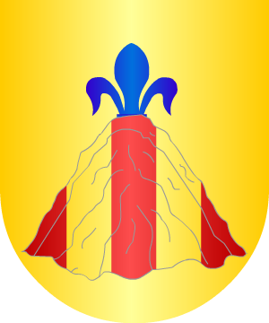 6.- Otros Ayguaviva: En campo de oro, un monte flordelisado de gules y solo sobre el monte cargados dos palos de plata.