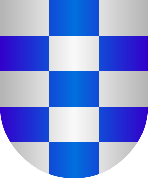 11.- Otros: Escudo ajedrezado de plata y de azur, tres órdenes verticales por cinco horizontales.