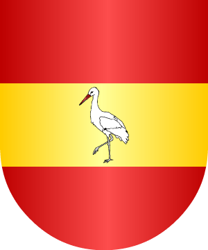 12.- Los Alba o Alva, de Asturias, según José Pellicer y Tobar y Antonio Gómez de Arévalo, traen: En gules, una faja de oro, cargada de una cigüeña blanca al natural.