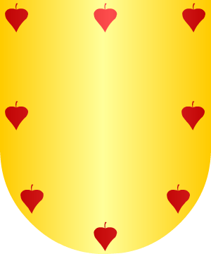 2.- Otros traen: En campo de oro, ocho panelas de gules puestas en orla.