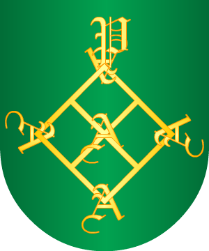 Originario de Cataluña. Armas En campo de sinople, cuatro Aes apuntadas al centro, donde se encuentra otra, entrelazadas todas por una malla tamién de oro, rematada en su ángulo superior por una P del mismo metal. |