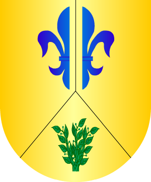 2.- Los de Azcoitia traen: De oro, una encina de sinople y un lobo de sable empinado a su tronco. Bordura de azur con cuatro lises de oro.