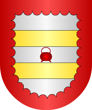 un creciente jaquelado de oro y sable. 4.- Otros traen: En campo de oro un medio vuelo de azur surmontado por una estrella del mismo color. 5.- En campo de azur medio vuelo bajado y contornado de oro y sobre ondas de plata y azur. Bordura de ocho compones de oro. 6.-Los de las casas de Lérida y Tortosa usan: Escudo de azur, con una flor de lis de oro y cuatro crecientes de plata, apuntados al centro. En el jefe seis estrellas de plata, cuatro en faja y las otras dos bajo los extremos de ésta. 7.- Otros, en Aragón, traen: Escudo partido: 1º, en campo de plata, un águila de sable, y 2°, en campo de gules, cinco lanzas de plata. 8.- Otros de Aragón, según J.-B. Rietstap, traen: En campo de plata, medio vuelo de azur, puesto en faja. 9.- Los de Burgos, según Vicente de Cadenas: Escudo cortado: 1º, en campo de azur, un vuelo de plata, y 2º, en campo de sinople, dos puñales de plata, encabados de oro, puestos en faja. 10.- Otros: En campo de oro, un medio vuelo bajado de azur, y surmontado de una estrella del mismo color. 11.- Otros: En campo de azur, un medio vuelo bajado y contornado de oro. Bordura de ocho piezas de oro. 12.- Los de Cataluña, según Gregorio García Ciprés, traen: Escudo de oro y en la punta una orla de azur. 13.- Otros traen: Escudo cuartelado: 1º, de... tres águilas mal ordenadas de..., 2º, de... un árbol de... surmontado de una cruz de... y entre dos palos de..., 3º, de...un monte naciente de... y sumado de un pájaro contornado de... y 4º, de... una fuente de... Información de estos linajes complementada por cortesía de blasonari.net |