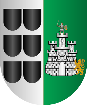 dos palos de sinople, y 2º de azur, un creciente ranversado de plata. 3.- Escudo partido, 1º de oro, tres palos de sinople, y 2º de azur, un creciente ranversado de plata. 4.- Escudo partido: 1º, de azur, un creciente de plata ranversado, y 2º, de oro, tres palos de sinople. 5.- Escudo partido: 1º, de sinople, tres palos de oro, y 2º, en campo de azur, un creciente de plata. 6.- Una rama de Zaragoza: Escudo partido: 1º, de oro, tres palos de sinople recortados, y 2º, de azur, un creciente de plata. 7.- Los de Arguedas, en Navarra: En campo de gules, cuatro bandas de oro cargada, cada una, de un lobo andante de sable y, entre ellas, diez y ocho armiños de sable. 8.- Otros de Arguedas: Escudo cuartelado: 1º y 4º, de gules, una banda de plata cargada de dos lobos de sable, y 2º y 3º, de gules, una faja de oro. 9.- En campo de azur, un castillo de oro acompañado de dos llaves de oro, una a cada lado, y saliendo de la puerta, una cadena de hierro. 10.- Los de Portugal, que descienden de los Señores de Vizcaya: En campo de gules, tres pescuezos, con sus cabezas de serpiente de plata, enlazados y atados de oro y, la del medio, montante, con las de los lados contramirandose. 11.- Los de Aragón y Murcia: Escudo partido: 1º, en campo de oro, dos bastones nudosos de sinople, puestos en palo y en faja, y 2º, en campo de azur, un creciente ranversado de plata. 12.- Los de Vizcaya: Escudo partido: 1º, en campo de azur, una cruz versada de plata, 2º, en campo de oro tres palos de sinople. Información de estos linajes complementada por cortesía de blasonari.net |
