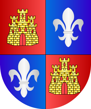de gules, un castillo de oro, aclarado de azur, y 2º y 3º, en campo