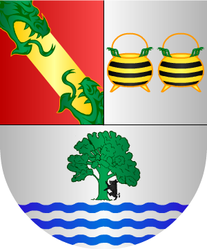 NOTA: Nos falta la descripción de los cuarteles 2º y 3º de la primera partición y el águila "engolada" de los cuarteles 1º y 2.º de la misma partición no parece tener sentido lógico. Es pues una descripción incorrecta o cuando menos muy ambigua.