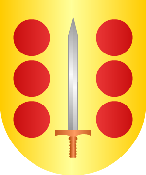 13.- Algunos Alonso, de Galicia, y otros de diversos puntos, descendientes de la casa del esclarecido héroe Nuño Alfonso, entre otros los de Toledo, que fueron Señores de Ajofrín, traen: En campo de oro, seis roeles de gules y en medio de ellos, una espada desnuda en medio de ellos, que son las armas que ostentaba dicho guerrero y las que se ven sobre su sepultura en Toledo.