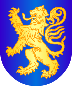 9.- Otros traen: Escudo cuartelado: 1º y 4º, de azur, un águila de oro, armada de sable; 2º y 3º, de sinople, una banda de plata, sembrada de armiños de sable.