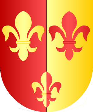 traen: En campo de gules, un león de oro, fajado de azur. Bordura de