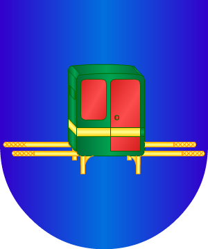 azur, una litera con sus andas de sinople, con perfiles de oro; la puerta y