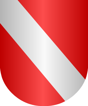 son: Escudo cuartelado: 1°, en campo de azur, dos fajas de plata; 2°,