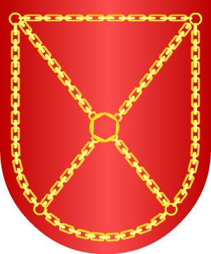 2.- Los de Castilla, otros de León, Aragón y Andalucía traen: De oro, dos llaves de azur en palo, pareadas y con los ojos hacia abajo. Bordura de gules con ocho aspas de oro.