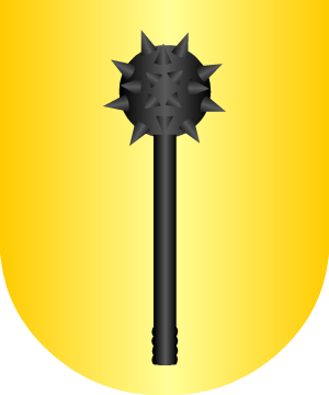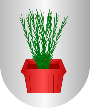 de gules, una en el jefe y otra en la punta, y 2º, en campo de azur, un