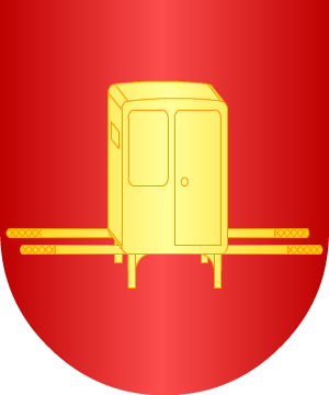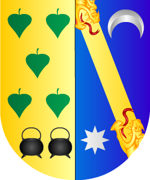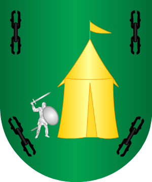 En campo de oro, un brazo vestido de gules, saliente del flanco siniestro, que sostiene un pendón con los escudos de Castilla y de León contrapuestos, y surmontados de una corona imperial.