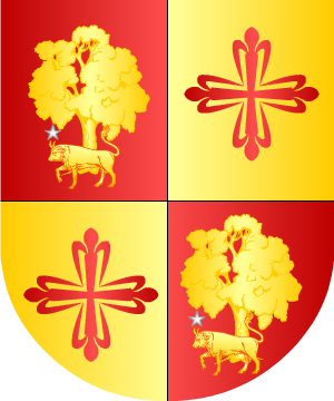 de oro y gules. 9.- Otros Armengol o Ermengol, en Cataluña, Andalucía y Mallorca traen: En campo de gules, un brazo armado, de plata, moviente del franco siniestro, y empuñando una espada desnuda del mismo metal. 10.- Otros Armengol o Ermengol, en Cataluña, Andalucía y Mallorca traen: En campo de oro, un brazo armado, de plata, moviente del franco siniestro, y empuñando una espada desnuda del mismo metal. 11.- Johan Baptiste Rietstap señala para los Armengol o Ermengol, en Cataluña, Andalucía y Mallorca: En campo de oro, un brazo armado, de plata, moviente del franco siniestro, y empuñando una espada del mismo metal, guarnecida de oro. 12.- Esclaramunda de Armengol, descendiente de la primera línea de los Condes de Urgel, fue sucesora de todo aquel estado, casó con su pariente Suñer el atrevido, el cual de Barcelona y de sus sobrinos fue Gobernador. Usaba por armas: Escudo cortinado. 1º y 2º, en campo de gules, barras de oro, y la capa o chapé. ajedrezado de oro y sable, que es la divisa propia de Suñer. 13.- Los Armengol, Barones de Rocafort de Queralt, también en Cataluña, traen: Escudo ajedrezado de oro y sable; partido y fajado de oro y gules, y entado en punta, de oro, con una vaca de gules, andante. 14.- Los Barones de Rocafort de Queralt, también en Cataluña, usan: Escudo mantelado: 1º ajedrezado de oro y sable; 2º, fajado de oro y gules, y el mantel de oro, con una vaca de gules, andante. 15.- Otros Armengol aragoneses, según Pedro Vitales, ostentan: En campo de plata, una espada de azur, puesta en palo y con la punta hacia el jefe, acostada a la diestra de un vaso de gules, salpicado de oro, y a la siniestra de una perdiz parda, picada y armada de gules. 16.- Los Armengot, de Aragón, según Pedro Vitales, traen: En campo de plata, una espada de azur, guarnecida de sable, puesta en palo y con la punta hacia el jefe, acostada a la diestra de un vaso de gules, salpicado de oro, y a la siniestra de una perdiz parda, picada y armada de gules. 17.- Dicen algunos tratadistas que otra familia Armengol o Ermengol de Cataluña, trae: Escudo partido: 1º, fajado de seis piezas, de oro y azur (Armengol), y 2º, en campo de gules, tres chevrones de plata (Montarnés). 18.- Otra rama, en Cataluña y Aragón traen: Escudo cuartelado: 1º y 4º, losanjado de oro y sable, y 2º y 3º, de oro, un losange, de sable; bordura general almenada de sable, de ocho piezas. 19.- Otros Armengol, en Cataluña y Aragón, traen: Escudo cuartelado: 1º y 4º, losanjado de oro y sable, y 2º y 3º, las armas de Aragón, y sobre ellas un losange, de sable; bordura general almenada de sable, de ocho piezas. 20.- Los Armengol, radicados en Badajoz, según Vicente de Cadenas, traen: En campo de plata, tres encinas de sinople, puestas dos y una; bordura de gules, con una espada puesta en su jefe. 21.- Los Armengot traen: En campo de oro, un árbol, de sinople, frutado de gules, sobre terrasa de sinople; bordura jaquelada de oro y sable, en dos ordenes. 22.- Otros Armengol o Ermengol traen: En campo de oro, tres fajas, de gules. 23.- Otros traen: Escudo fajado de seis piezas, tres de oro y tres de azur. 24.- Otros traen: Escudo fajado de seis piezas, tres de gules y tres de oro. 25.- Otros de Cataluña, traen: Escudo cuartelado: 1º y 4º, escaqueado de oro y sable, y 2º y 3º, en campo de oro, dos palos, de gules. 26.- Otros de Cataluña, traen: Escudo cuartelado: 1º y 4º, escaqueado de oro y sable, y 2º y 3º, en campo de oro, dos fajas, de gules. 27.- Los Armengol de Torroella de Montgrí: Escudo cortado y enclavado de tres de oro, y escacado de oro y sable. 28.- Los de Hinojosa (Badajoz), traen: Escudo mantelado: 1º, en campo de gules, dos bandas blancas con perfiles negros, 2º, jaquelado de oro y sable, y 3º o mantel, de oro, con una vaca, de gules. 29.- Otros traen: Escudo partido: 1º, en campo de gules, dos fajas, de plata, y 2º, en campo de oro, un buey, de gules. 30.- Otros usan: De…, una mano palmeada de... 31.- En otro expediente, perteneciente al Caballero de la Orden de San Juan, Pedro A. Paguera y Armengol, año 1767, natural de Barcelona: Escudo partido en palo: 1º, escaqueado (ajedrezado) de oro y sable, 2º, tres fajas de oro y tres de gules, y 3º, en punta, en campo de oro, una vaca pasante, de gules. 32.- En el expediente del Caballero Pedro Jerónimo Net Montaner y Armengol, natural de Mallorca, año 1738, constan las siguientes armas: En campo de oro, un brazo armado con un estoque en la mano. 33.- En el expediente del Caballero de la Orden de San San Juan, Federico Armengol constan las siguientes armas: Escudo partido: 1º, dos bandas, y 2º, ajedrezado y cortinado un buey (sic). 34.- En el expediente del Caballero de la Orden de San Juan, Ramón Calders Meca y Armengol, año 1595, se citan estas armas: Un escudo ajedrezado de oro y sable, con una vaca de gules y collar de plata en campo de plata (sic). Información de estos linajes complementada por cortesía de blasonari.net |