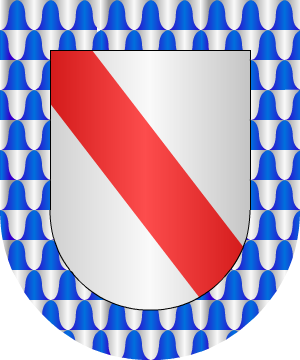 12.- Esclaramunda de Armengol, descendiente de la primera línea de los Condes de Urgel, fue sucesora de todo aquel estado, casó con su pariente Suñer el atrevido, el cual de Barcelona y de sus sobrinos fue Gobernador. Usaba por armas: Escudo cortinado. 1º y 2º, en campo de gules, barras de oro, y la capa o chapé. ajedrezado de oro y sable, que es la divisa propia de Suñer.