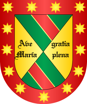 5.- Otros de la rama de Valencia, según Viciana traen: En campo de azur, un grifo, de oro; orla con el siguiente lema: "Missit lapidem in pera et funda, et manu tullit".