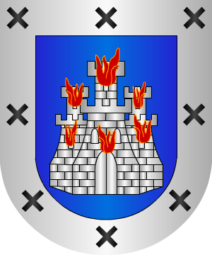 9.- Otros Arnau: En campo de gules, una torre de oro, con una escala, en su diestra.