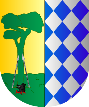 Escudo partido, 1º de gules, un águila de plata; y 2º de oro, tres fajas de azur.