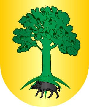 14.- Otros traen: En campo de gules, un árbol, de su color natural, terrasado de sinople.