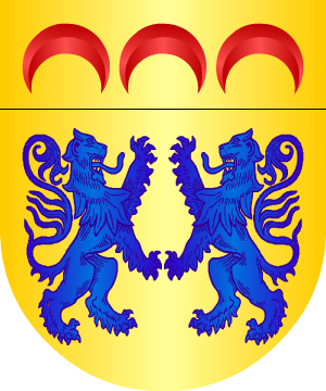 En campo de oro, dos cetros puestos en aspa, surmontados de una cabeza de carnación