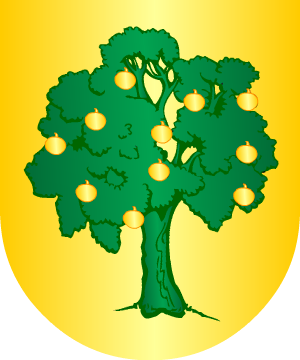 traen: En campo de oro, un árbol de sinople y un león rampante,