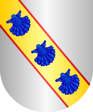 22.- Otros Aznares, también de Navarra, traen: En campo de oro, tres fajas de gules, cargada cada una de una venera, de plata.