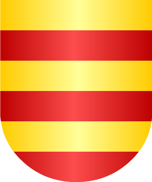 10.- Otros traen: En campo de oro, cinco palos de gules, cargados de tres flores, de lis, cada uno, de plata.