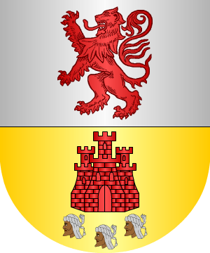 traen: En campo de oro, un árbol de sinople y un león rampante,