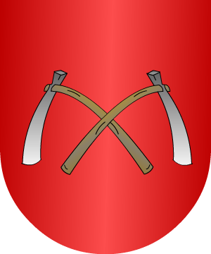 De gules, dos azuelas puestas en aspa.