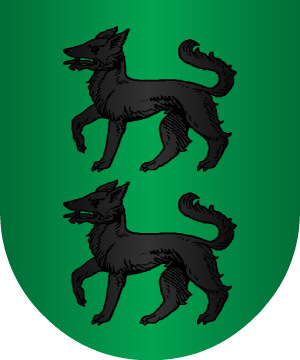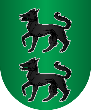 6.- Otros traen: En campo de sinople, dos lobos, de sable, andantes y puestos en palo.