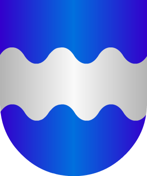 en campo de azur, una banda de oro, con dos flores de lis opuestas de color