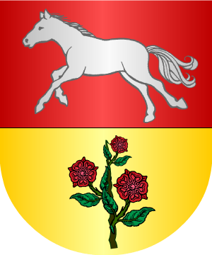 Escudo mantelado: 1º, en campo de gules, tres palos de oro; 2º, en