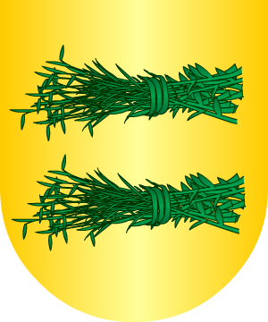 Psayla, traen: En campo de oro, un toro pasante de gules. Bordura de sinople