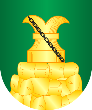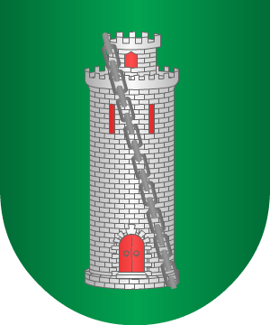21.- Otros Cadenas: En campo de sinople, una torre, de oro, almenada y mazonada de sable, cargada de una espada.