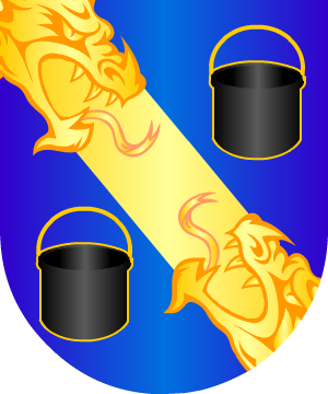 26.- Otros Cadena: Escudo cortado: 1º, en campo de plata, una cadena, de azur, puesta en banda, y 2º, en campo de gules, dos calderas, de oro, puestas en faja.