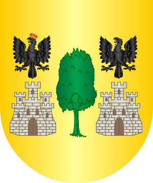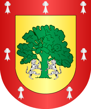 Apellido de origen castellano. Armas En campo de gules, cinco leones rampantes de oro, puestos en sotuer. |