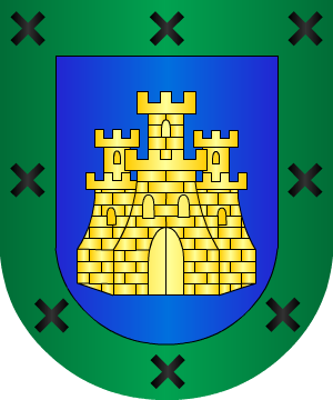 todo de oro. 69.- En el "Libro de Armería de Navarra" aparecen las armas de Mossén Francisco del Castillo, Caballero de San Jorge, vecino de Tudela, y de Juan del Castillo, su hijo, vecino de Cascante, que son: Escudo cuartelado: 1º y 4º, en campo de plata, una cruz floreteada de gules, y bordura para este cuartel de azur con ocho castillos de gules, y 2º y 3º, en campo de azur, un castillo de gules, un lucero de oro en jefe, y bordura para este cuartel de azur con ocho luceros de oro. 70.- Otros, según Gonzalo Argote de Molina, traen: En campo de azur, un castillo de oro con una bandera blanca. 71.- José de Rújula y Escobal, Cronista y Rey de Armas del Rey Don Alfonso XIII, certificó el 23 de Enero de 1904 las siguientes armas. Escudo cuartelado: 1º y 4º, en campo de azur, una cruz floreteada de oro, y 2º y 3º, en campo de gules, un castillo de oro. 72.- Otros, según Alonso Rodríguez de la Vega, traen: "Un castillo de oro en campo de gules y un león en campo de plata". 73.- Otros, según Agustín de Loaysa, usan: En campo de sinople, un castillo de plata pasado de sable. Bordura de oro con ocho roeles de azur torneados. 74.- Otros, según Agustín de Loaysa, traen: En campo de plata, un castillo de gules. Bordura de gules con roeles de oro. 75.- Otros, según Agustín de Loaysa, usan: En oro, un castillo con dos perros atados. 76.- Otros: En campo de azur, sobre ondas de azur y plata, tres islas, de sinople, y sobre ellas, tres torres, de oro, puestas en faja. 77.- Otros: En campo de azur, terrasado de sinople, un castillo de plata mazonado y almenado, aclarado de sable, con dos leones de plata, rampantes y afrontados a ambos lados de la puerta y sumado su homenaje, de cinco cadenas de gules. 78.- Otros, según Ave de Gracia, traen: En campo de gules, un castillo de plata con cinco almenas, sobre rocas pardas. Bordura de plata con seis rosas de azur. Información de estos linajes complementada por cortesía de blasonari.net |