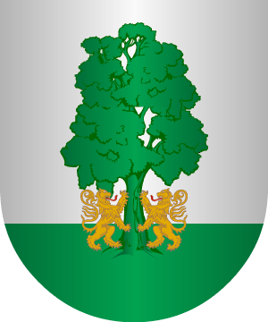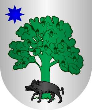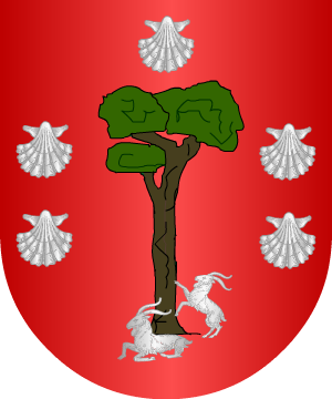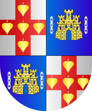 Escudo cuartelado: 1º y 4º, en campo de plata, una cruz, llana, de gules, a todo trance, cargada de cinco panelas de oro, y 2º y 3º, en campo de azur, un castillo de oro, aclarado de azur y acostado de dos trozos de cadena de plata, de tres eslabones cada uno, puestos en palo.