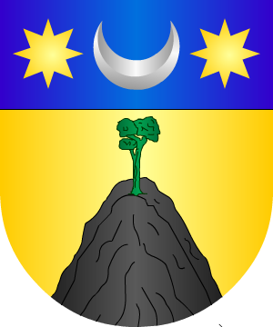 de oro, un monte, de sable, sumado de un pino, de sinope; jefe de azur, cargado
