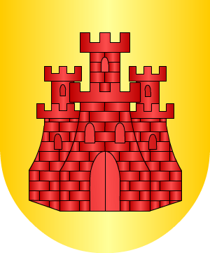 escudo partido: 2º, de plata, con el castillo de gules, y 2º, de plata