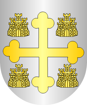 Navarro. Armas En campo de plata, una cruz trebolada de oro, cantonada de cuatro castillos del mismo metal. |
