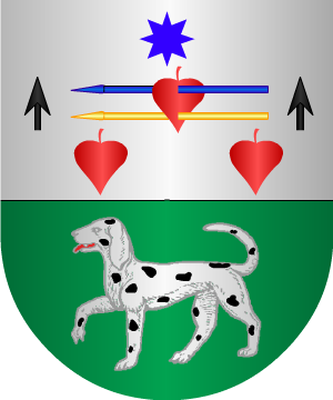 Linaje guipuzcoano. Armas Escudo cortado, 1º de plata, tres panelas de gules mal ordenadas, la panela superior está atravesada por una lanza de azur en su mitad alta y de oro en la baja, y está acostada de dos hierros de sable; en jefe, una estrella de azur; y 2º de sinople, un lebrel andante de plata manchado de sable y lampasado de gules. |