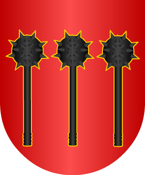 1.- Sus armas primitivas traen : En campo de gules, tres mazas de sable puestas en faja.