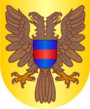 En campo de oro, un águila explayada y cargado su pecho de un escudete de azur, con una faja de gules.